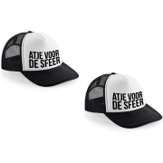 2x stuks zwart/ wit Atje voor de sfeer snapback cap/ truckers pet heren - feest petjes -