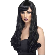 Verkleed pruik - zwart - met pony - damespruik - Carnaval pruiken -