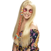 "Blonde hippiepruik voor vrouwen. - Blonde hippiepruik voor vrouwen met erg lange steile haren met vlechtjes met en pareltjes. Pruik van goede kwaliteit die ideaal is voor uw avonden met hippie-,…