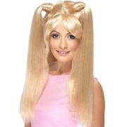 "Girlsbandpruik voor vrouwen - Blonde girlsbandpruik voor vrouwen. Steile haren met twee staartjes, waar rond 1 lok gedraaid werd. Perfect om uw girlsbandoutfit compleet te maken bij verkleed-of…