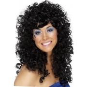 Jaren 70 damespruik met zwarte lange bos krullen -