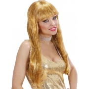 Verkleed pruik - goud - glitter - damespruik - tinsel/folie verkleedpruiken -