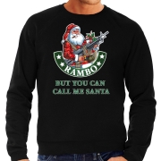 Foute Kerstsweater / Kerst outfit Rambo but you can call me Santa zwart voor heren. Deze Kerstsweater / trui is bedrukt met een Rambo Kerstman met een geweer en de tekst: RAMBO BUT YOU CAN CALL ME…