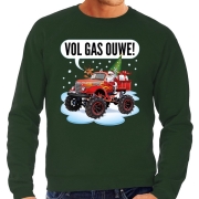 Grote maten foute Kersttrui monstertruck santa groen voor heren. Deze groene Kerst trui / sweater is bedrukt met de afbeelding van de kerstman op een monster truck en de tekst: Vol gas ouwe! Deze…