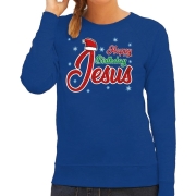 Foute Kersttrui Happy Birthday Jesus blauw voor dames XL (42) -