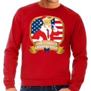 Foute kersttrui / sweatshirt rood, Christmas is gonne be Huge, voor heren. De sweater is bedrukt met President Trump en de tekst: Christmas is gonne be huge! Deze kersttrui/ sweater/ sweatshirt is…
