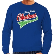 Foute Kersttrui Merry fucking christmas blauw voor heren. Deze Kerst trui / sweater is bedrukt met de tekst: Merry Fucking Christmas. Deze kersttrui / sweater / sweatshirt is van dun ongeborsteld…