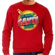 Foute Kersttrui The name is Santa bitches rood voor heren. Deze Kerst trui / sweater is bedrukt met de tekst: The name is Santa bitches. Deze kersttrui / sweater / sweatshirt is van dun…