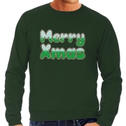 Merry xmas foute Kerstsweater / outfit groen voor heren. Deze Kerst sweater / trui is bedrukt met de tekst: Merry xmas. Deze Kerstsweater / Kerst trui is leuke Kerstkleding om te dragen tijdens…