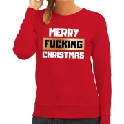 Foute kersttrui / sweater Merry fucking christmas rood voor dames. De Kerst sweater is bedrukt met de tekst: Merry fucking Christmas. Deze kersttrui / sweater / sweatshirt is van dun ongeborsteld…