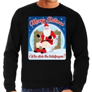 Foute merry shitmas zwart voor heren. Deze Kerst trui / sweater is bedrukt met de afbeelding van de kerstman op het toilet en de tekst: Merry Shitmas Who stole the toiletpaper? Deze kersttrui /…