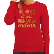 Foute kersttrui/sweater voor dames - Hohoho diamanten cadeau - rood - glitter goud XL -