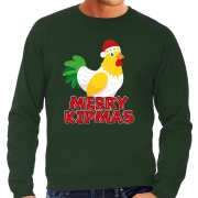 Foute Kersttrui voor heren - Merry Kipmas - groen - hilarisch - kip met kerstmuts L -