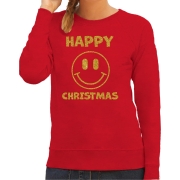 Foute kersttrui/sweater voor dames - Happy Christmas - rood - glitter goud - Smile Emoticon 2XL -