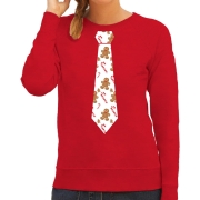 Bellatio Decorations stropdas Kersttrui sweater / outfit rood voor dames. Op deze trui staat: een stropdas met gingerbread en zuurstokken.Deze Kerst sweater / trui is leuke Kerstkleding om cadeau…