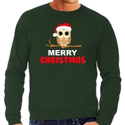 Bellatio Decorations leuke dieren Kersttrui sweater / outfit uil groen voor heren. Deze trui bevat een leuke tekening van een uil met de tekst: Merry Christmas. Perfect voor de dieren liefhebber…