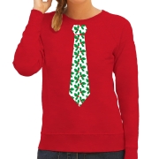 Bellatio Decorations stropdas Kersttrui sweater / outfit rood voor dames. Op deze trui staat: een mistletoe stropdas.Deze Kerst sweater / trui is leuke Kerstkleding om cadeau te doen of om zelf te…