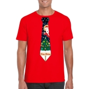 Fout kerst t-shirt rood met kerstboom stropdas voor heren L -