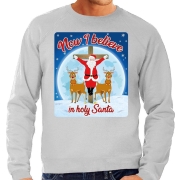 Foute Kersttrui Now i believe in holy Santa grijs voor heren XL (54) -