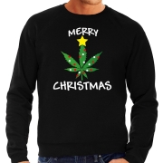 Bellatio Decorations foute humor wiet Kersttrui sweater / outfit zwart voor heren. Op deze trui staat: "Merry Christmas" met een wiet plant als Kerstboom. Perfect voor een stoner. Deze…