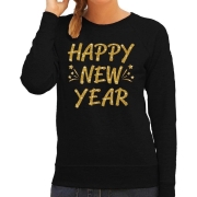 Oud en Nieuw trui / sweater happy new year goud op zwart dames S (36) -