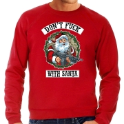 Grote maten foute Kerstsweater / Kerst outfit Don't fuck with Santa rood voor heren. Deze Kerst sweater / trui is bedrukt met een Kerstman met een geweer en de tekst: DON'T FUCK WITH SANTA. Deze…