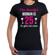 Verjaardag cadeau t-shirt 25 jaar - this beautiful woman is 25 give wine zwart voor dames S -