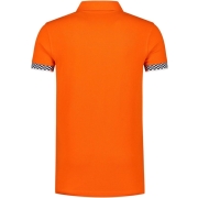 Oranje polo shirt racing/Formule 1 voor heren. Katoenen oranje Holland polo t-shirt met op de mouwen zwart/wit geblokte vlag ofwel de finish vlag. In de hals zit een knoopsluiting met twee…