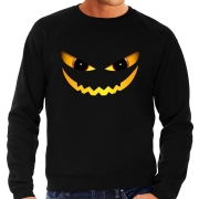 Pompoen gezicht halloween verkleed sweater oranje voor heren XS -