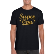 Super opa kado t-shirt met gouden glitters op zwart voor heren. Op dit zwarte shirt staat in gouden glitter letters de tekst: Super opa. Leuk om cadeau te geven voor opa's verjaardag of gewoon…
