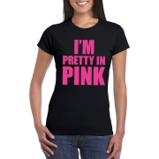 I am pretty in pink shirt zwart voor dames. Op dit shirt staat groot de tekst I m pretty in pink. Materiaal: 150 grams, 100% katoen. Let op: het t-shirt valt relatief klein. Bij twijfel…