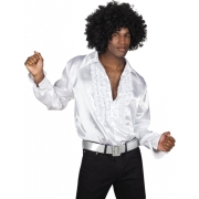 Carnaval verkleedkleding shirt met rouches - wit - heren - blouse - polyester - Disco time M -