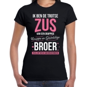 Trotse zus / broer cadeau t-shirt zwart voor dames M -