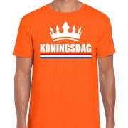 Oranje Koningsdag met kroon shirt voor heren. Op dit shirt staat groot Koningsdag met een kroon. Materiaal: 150 grams, 100% katoen.…
