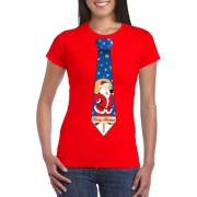 Foute Kerst t-shirt stropdas met kerstman print rood voor dames S -