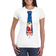 Foute Kerst t-shirt stropdas met kerstman print wit voor dames XS -