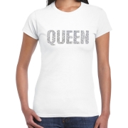 Glitter Queen t-shirt wit rhinestones steentjes voor dames - Glitter shirt/ outfit S -