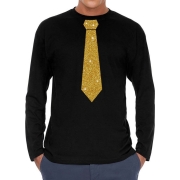 Stropdas goud glitter t-shirt long sleeve zwart voor heren M -