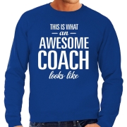 Awesome coach - geweldige trainer cadeau sweater blauw heren. Op deze blauwe sweater staat groot de tekst: This is what an awesome coach looks like. Kent u een geweldige trainer / coach?…