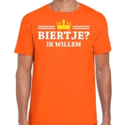 Koningsdag t-shirt voor heren in de kleur oranje. Op het shirt staat de tekst bedrukt: Biertje? Ik Willem! Boven de tekst staat een kroontje. Dit Koningsdag t-shirt is de perfecte oranje…