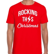 Rocking this Christmas fout Kerstshirt / outfit rood voor heren. Dit Kerst shirt is bedrukt met de tekst: Rocking this Christmas, met een bliksemschicht verwerkt in de tekst. Dit Kerstshirt is…