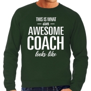 Awesome coach - geweldige trainer cadeau sweater groen heren. Op deze groene sweater staat groot de tekst: This is what an awesome coach looks like.  Kent u een geweldige trainer / coach?…