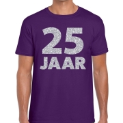 25 jaar zilver glitter verjaardag/jubilieum shirt paars heren S -