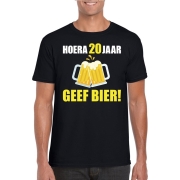 Hoera 20 jaar geef bier t-shirt zwart heren S -