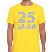 25 jaar zilver glitter verjaardag/jubilieum shirt geel heren L -