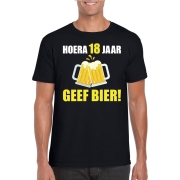 Hoera 18 jaar geef bier t-shirt zwart heren M -