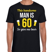 Verjaardag cadeau t-shirt 60 jaar - this handsome man is 60 give beer zwart voor heren S -