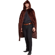 Deze bruine cape voor volwassenen is gemaakt van fluweelachtig stof. Het is ongeveer 120 cm lang en bevat een grote capuchon. De cape zal perfect zijn voor verschillende Halloween kostuums…
