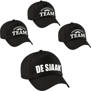 Vrijgezellenfeest heren petjes pakket - 1x De Sjaak zwart + 5x Vrijgezellen team zwart -