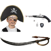 Verkleed speelgoed Piraten hoed, zwaard 65 cm en pistool met ooglapje. Gemaakt van kunststof. Verkleed wapens voor bij uw piraten verkleedkleding kostuum. Geschikt voor kinderen. Dit…